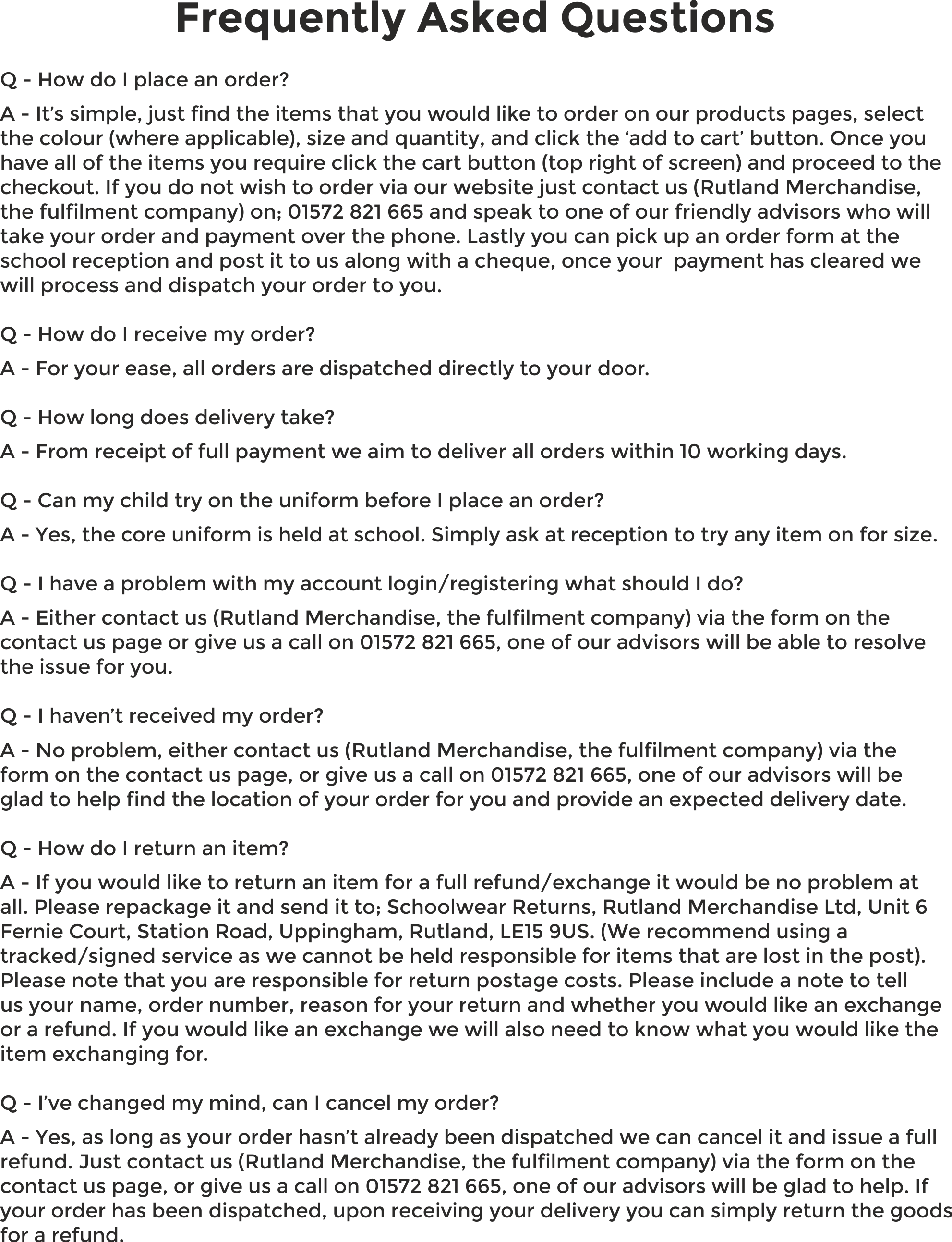 Call Our Fulfilment Team 01572 821665